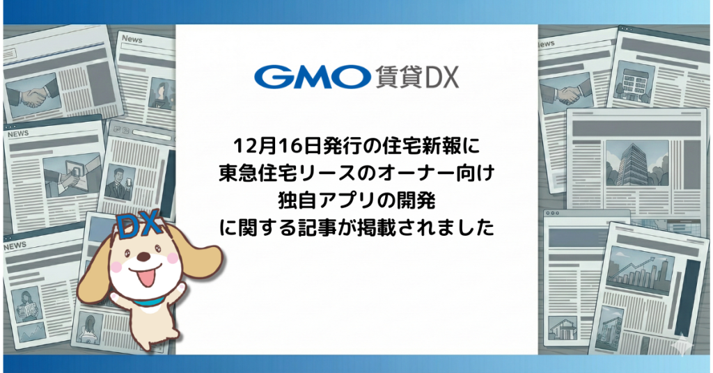 弊社が提供する不動産管理会社向けの「GMO賃貸DX」のオーナー向け独自アプリの開発に関して、12月16日発行の住宅新報に掲載されました。