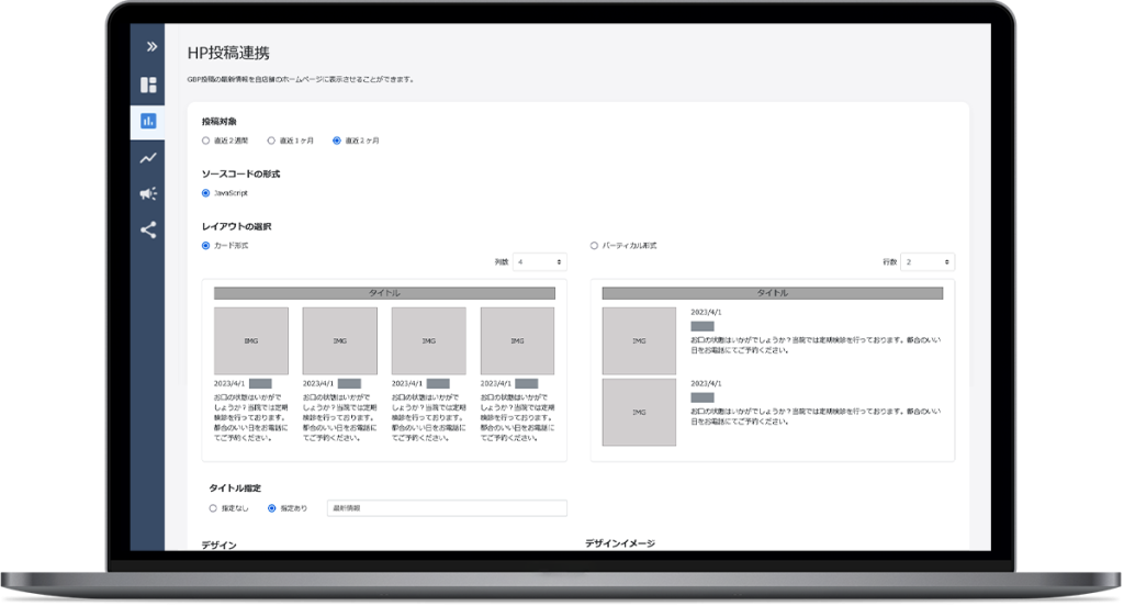 ダッシュボードから、SEO(※3)対策やGoogleしごと検索向けデータの生成、店舗HPとの連携など、ウェブサイト側の最適化も行えます。技術者がいない不動産会社でも、コーディングスキルは不要で、ワンタグ設置のみで実現できます。