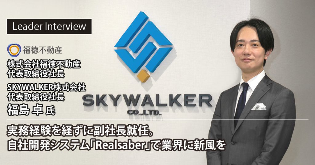 GMO ReTechが運営する不動産賃貸のDXマガジン「GMO賃貸DX WEBメディア」に、株式会社福徳不動産の代表取締役社長、SKYWALKER株式会社の代表取締役社長 福島 卓様へのインタビュー記事を公開いたしました。